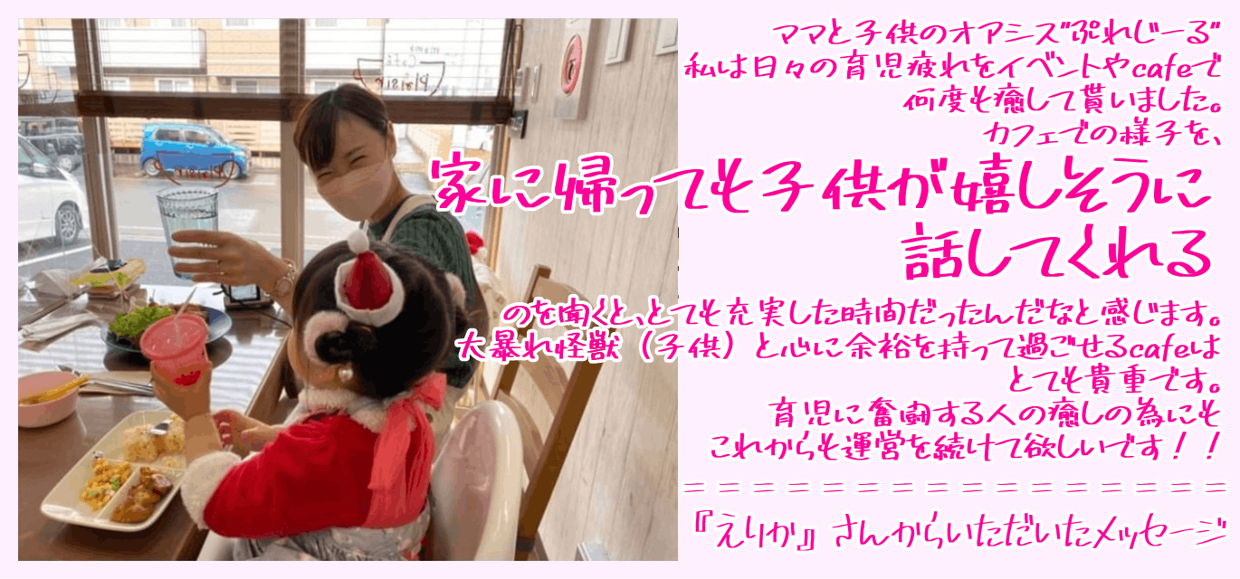 そしてママ𝙲𝙰𝙵𝙴ぷれじ~るに携わりながら、子育て世代の支援や、食育イベントを開催したり、親子の居場所であり続けたいと思っています。