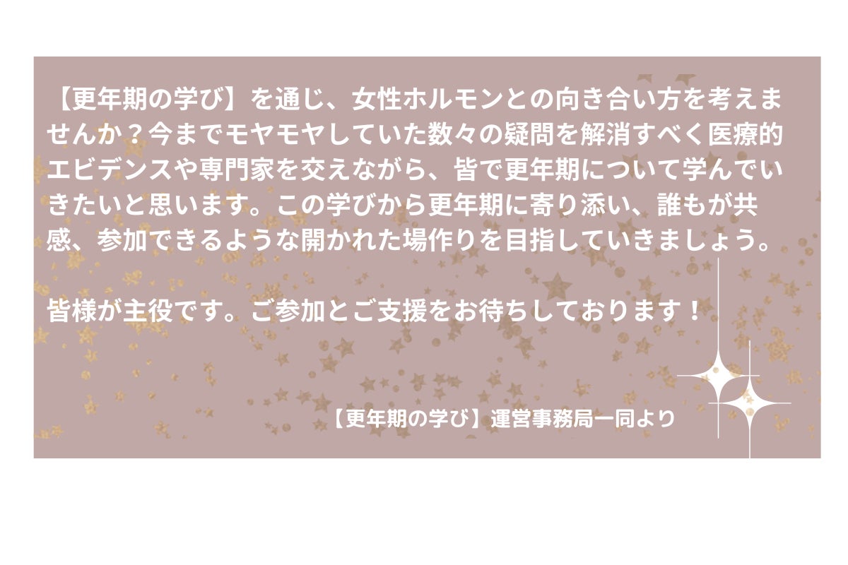 どうぞ【更年期の学び】をご支援下さい。皆さまにお目にかかるのを楽しみにしています。