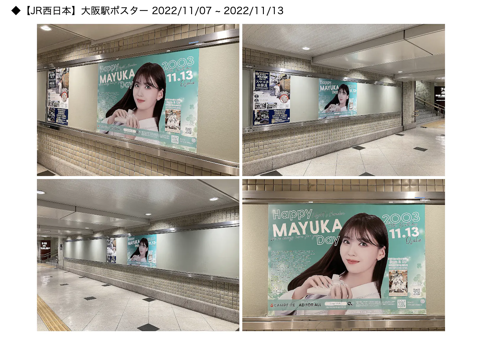 皆様からご支援いただいた資金をもとに、以下のお誕生日広告掲載を予定しております。