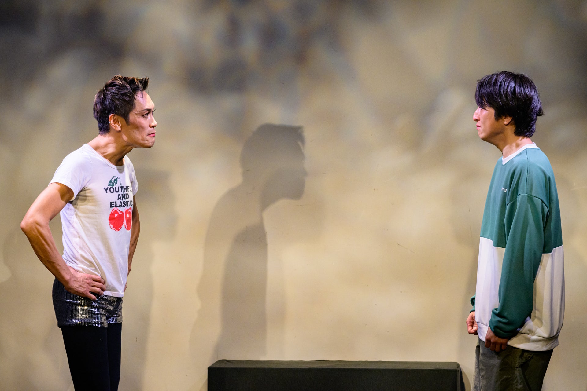 初演時、先月の公演ではいなかった登場人物、子ども役「オトコ」のセリフでした。その後の再演時、このセリフは、「青年ちゃん」のセリフとなります。