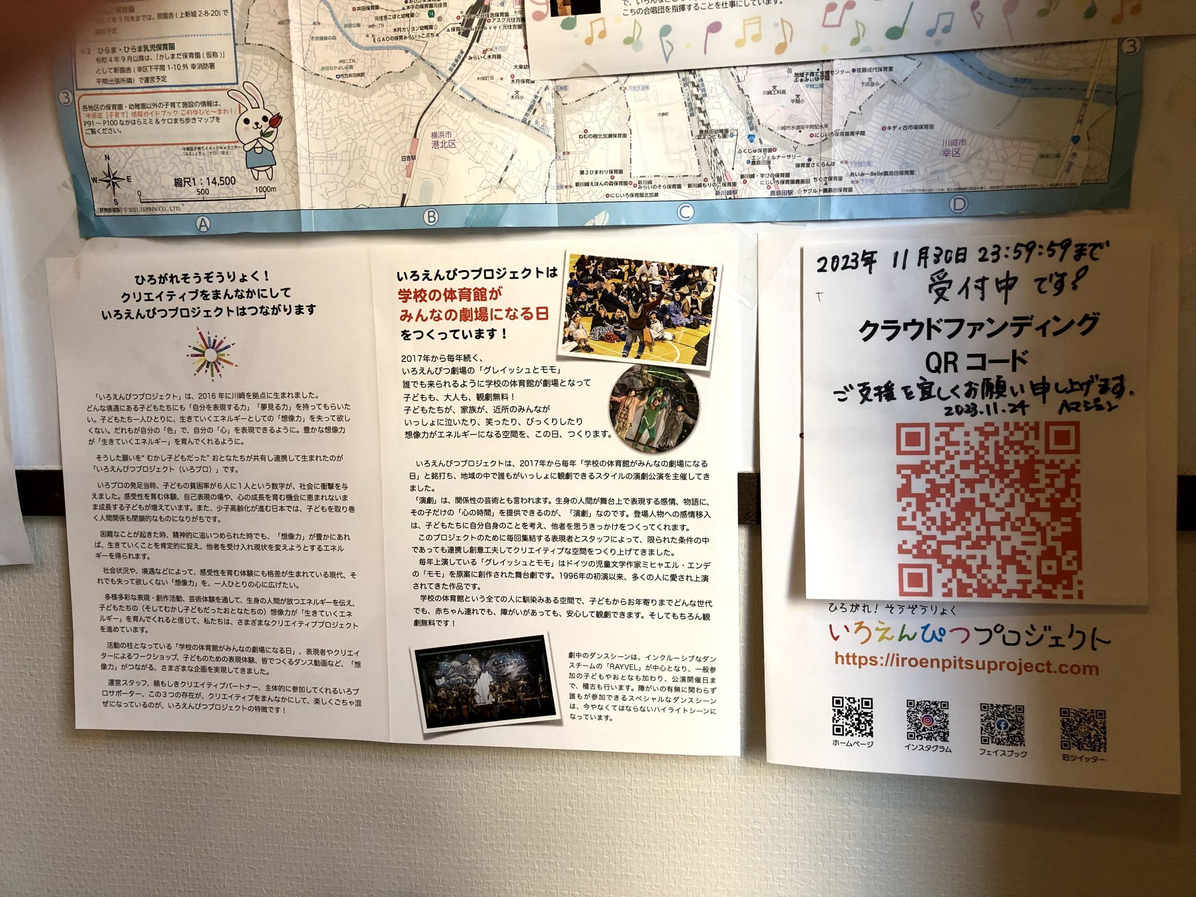 むかいがわら こども食堂 じぃーじぃーず様にて、クラファンページにひとっ飛びのQRコード、パンフレットを掲示して頂いています。
