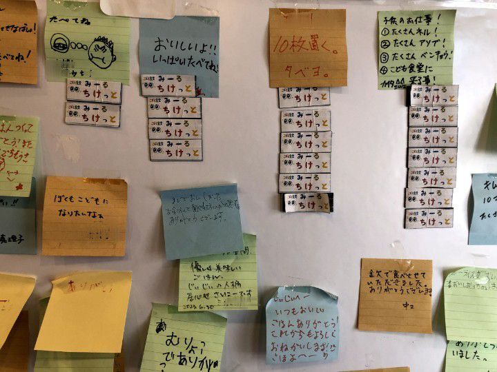 責任者の宮田さんの、あたたかくて美味しいゴハンが、みんなのおなかをいっぱいに満たしてくれます。おサイフ持たずに来た子のためには、誰かさんの先払いでチケットが。おなかいっぱいになったら、来年3月は、グレモモを観にきてね!