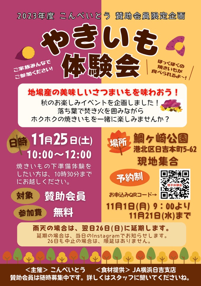 持ち込んだのは、“こんぺいとうスタッフ” で焼き芋大会に参加した、いろえんぴつプロジェクトの広報部長ハマジュンです。久しぶりのプレパ、焚き火、焼き芋、楽しかったそうです〜