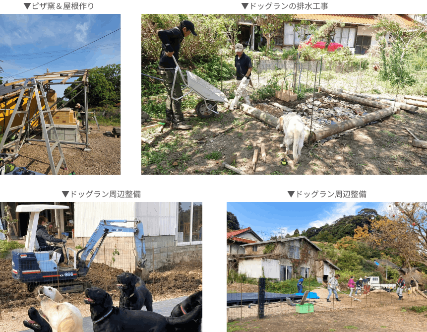 2年前に近所の家を空き家にしていた私の幼馴染が、「この空き家と空き地を使って欲しい」と言ってくれたのをきっかけに、古くからの犬友達と一緒に手弁当でドッグラン(約500坪)を作り始め、ドッグランのほか、ピザ窯や犬用シャンプー台などを設置し、今に至っています。