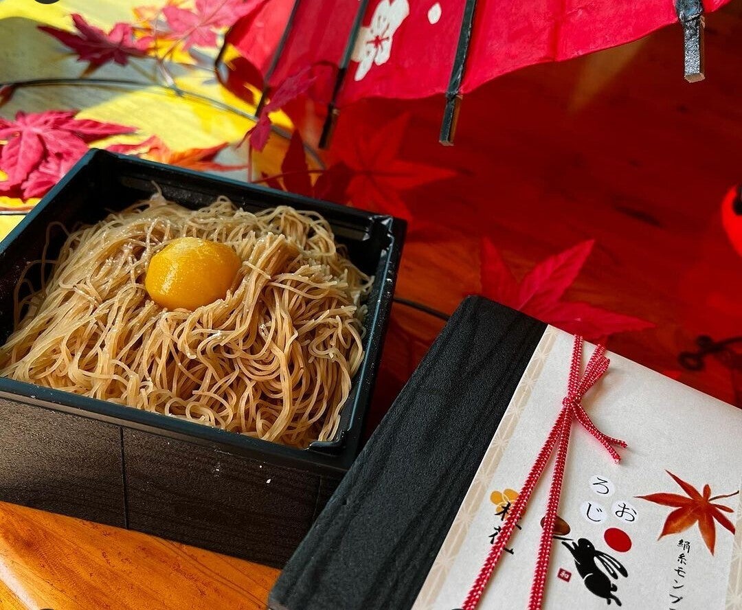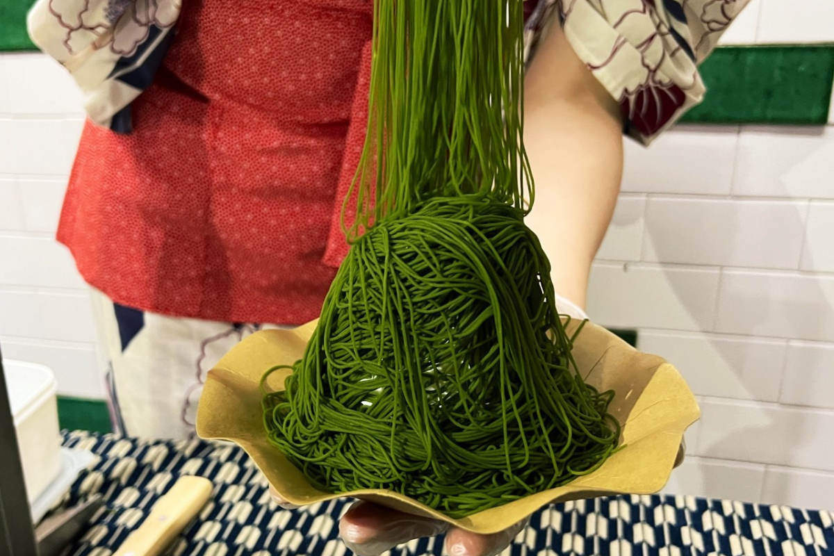 ペーストを1mmの細い絞り機から出し、京都宇治の抹茶をマロンペーストに贅沢に使用。