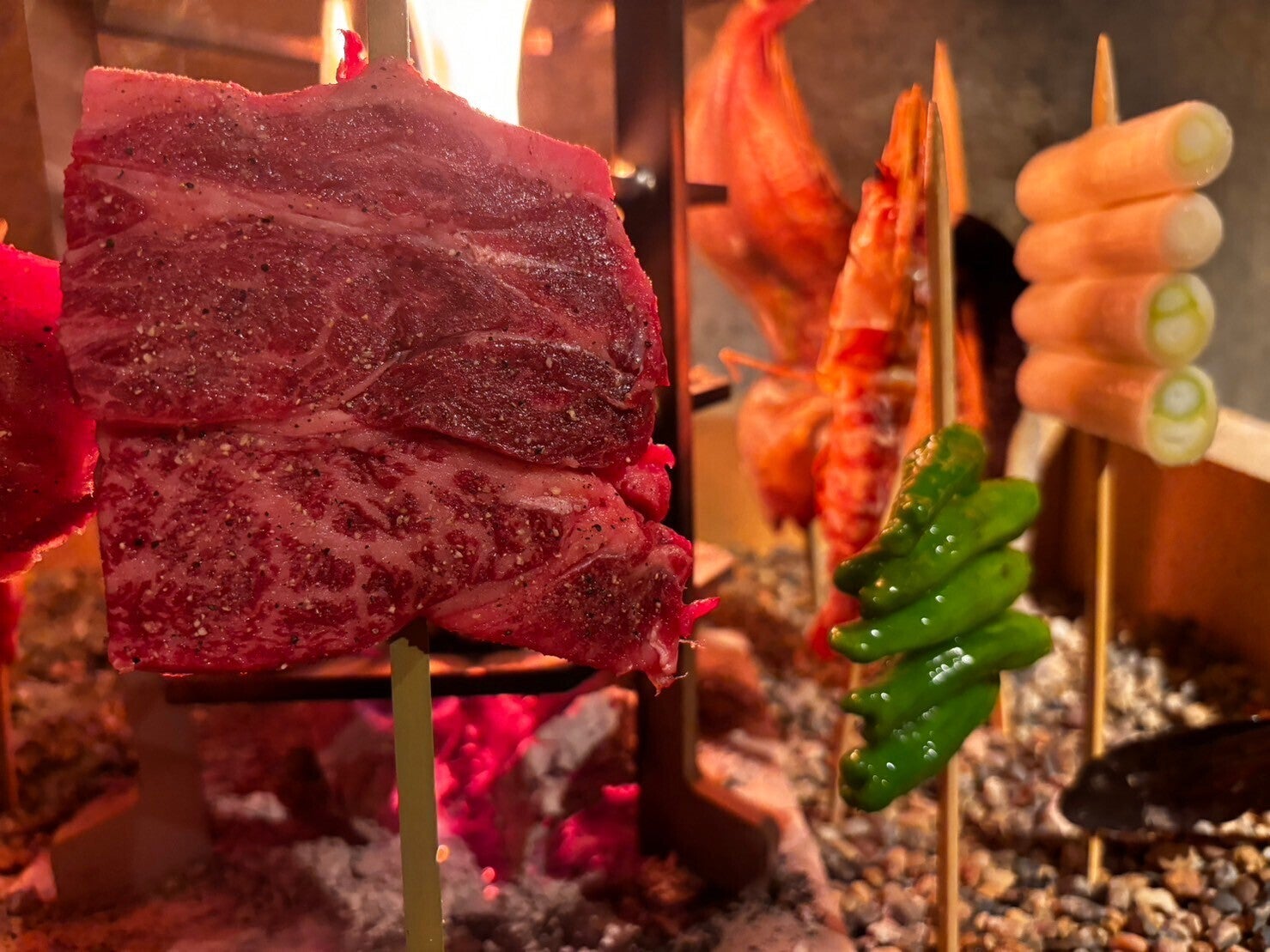 日本古来から伝わる「もっとも原始的な焼き方」であり、食材を串に刺し炭火の周りに立てて焼く調理法です。
