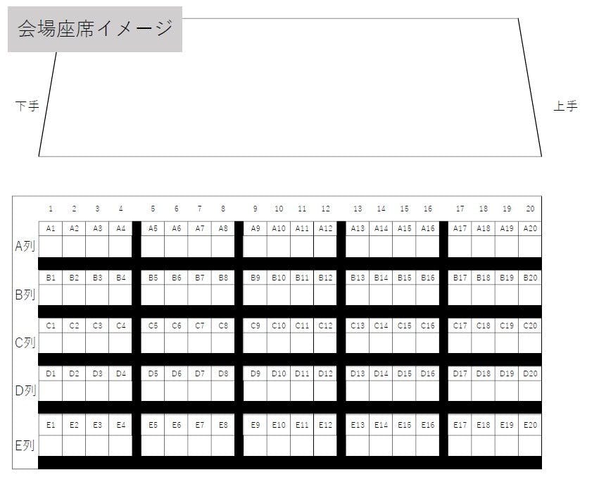 - ※下記画像の「座席」エリアの4列(予定)の中に準備いたします。