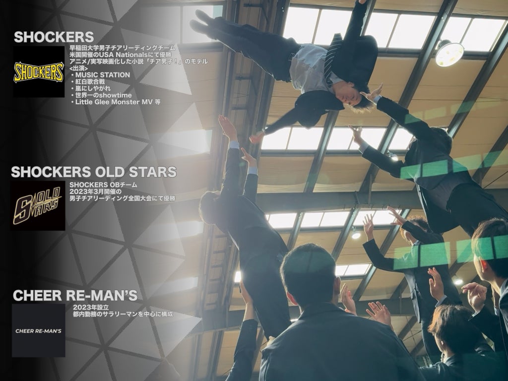 日本1となった男子チアリーディングチームメンバーを中心に、オールメンズ・オールサラリーマン のパフォーマンスチームを組成。