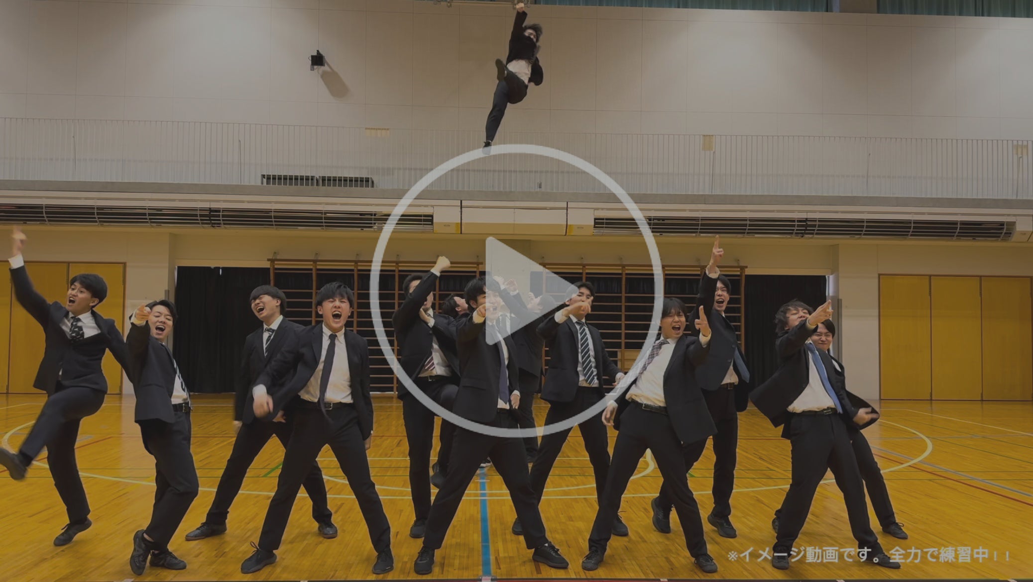 - ※チアリーディングならではの華麗な動き、サラリーマンの象徴であるスーツをデザインし、「誰もが何者にでもなれる」という想いを込めて制作いたしました。