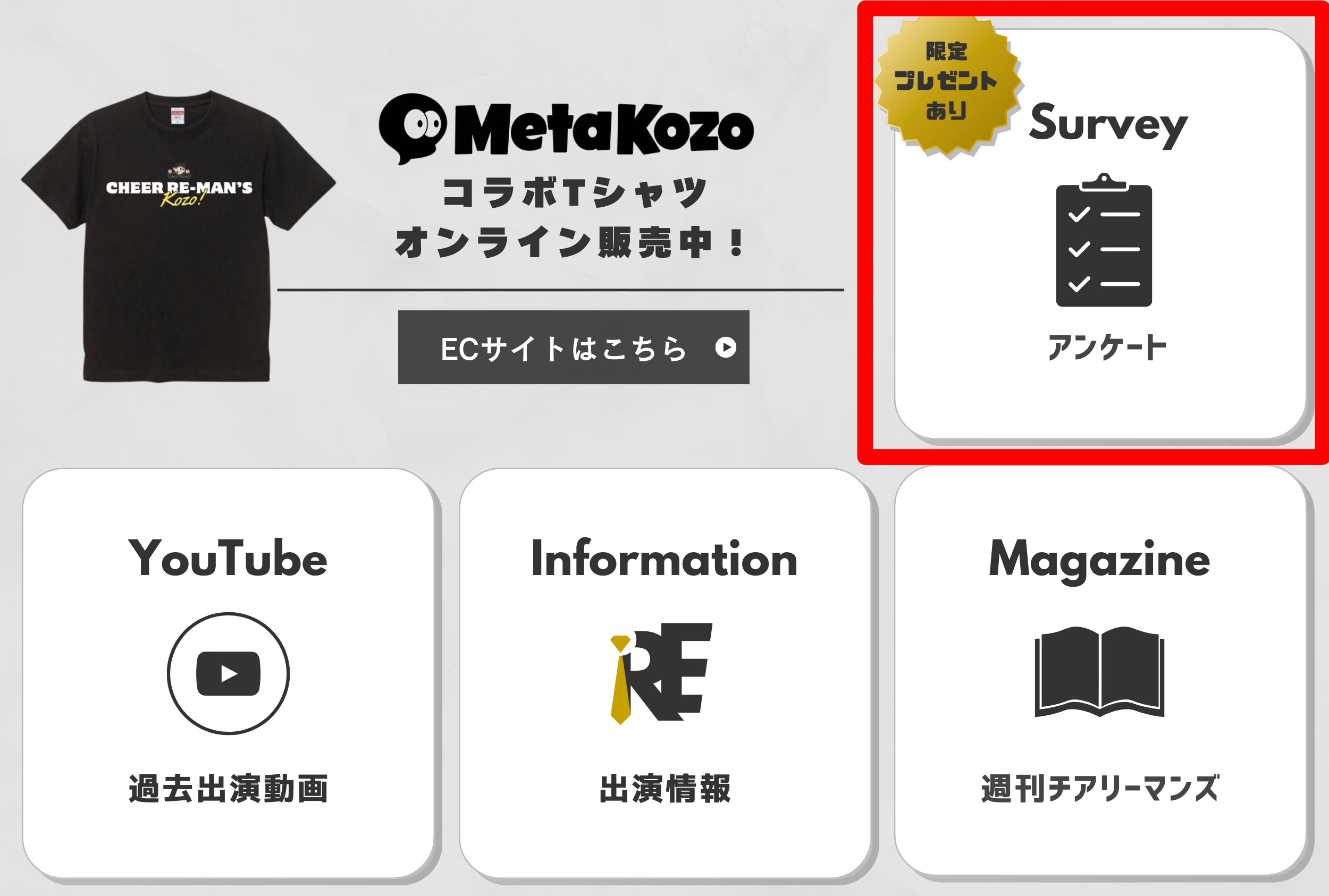 LINE公式アカウントのメニューの右上(添付の赤枠部分)から是非ご回答をお願いいたします。