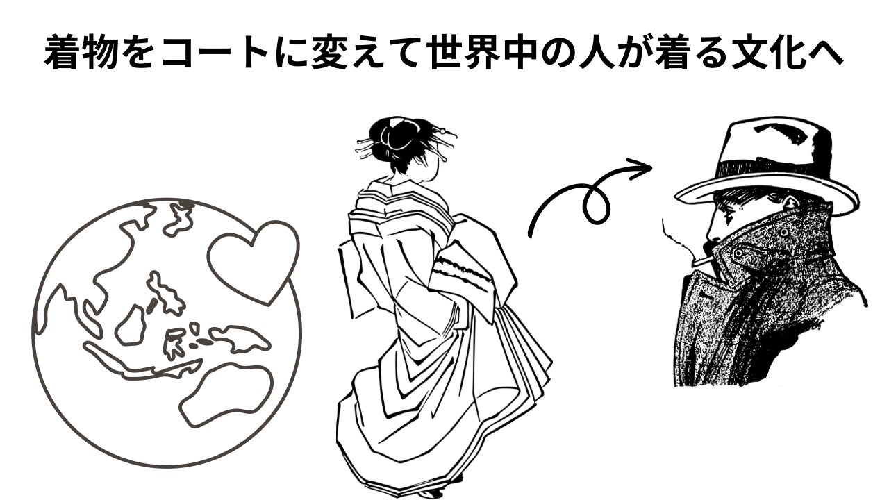 クラウドファンディングではインテリアですが、いずれは着物を気軽に着られるコートにしたいと思っています。見渡せば世界中でGranmaのコートが着られていて、笑い合いおしゃべりしながら街中を歩く。