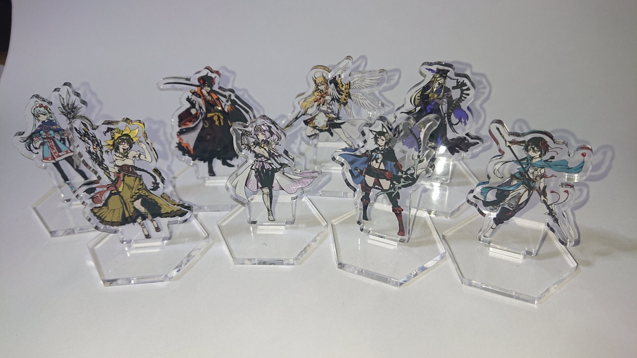追加プランBに同封されるアクリルスタンド(高さ50mm)が完成いたしました!!こちらはクラファン限定品ではありません。ゲームマーケット2023秋(日曜シ19)にて購入も可能です。ゲムマ価格はキャラ1名500円、キャラ8名セットで3000円となっています。観賞用の他、ゲーム上でキャラ選択時に利用すれば臨場感上がること間違いなしです!!