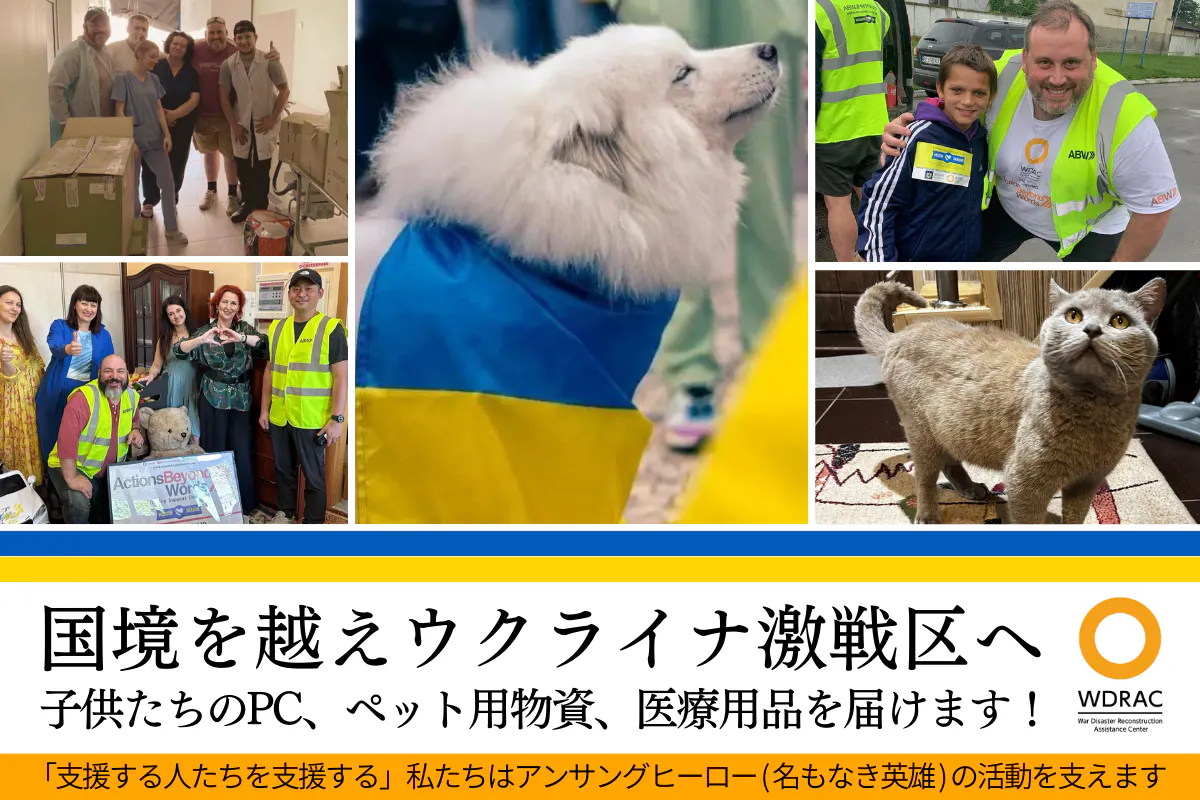 サイモンとトラヴィスが代表を務めるNGO法人Actions Beyond Words(以下、ABW)を支援するための本プロジェクト『ウクライナへ子供たちの学習用PC、ペット用物資、医療用品を届ける活動を支援する』は2023年11月17日を持って終了いたしました。