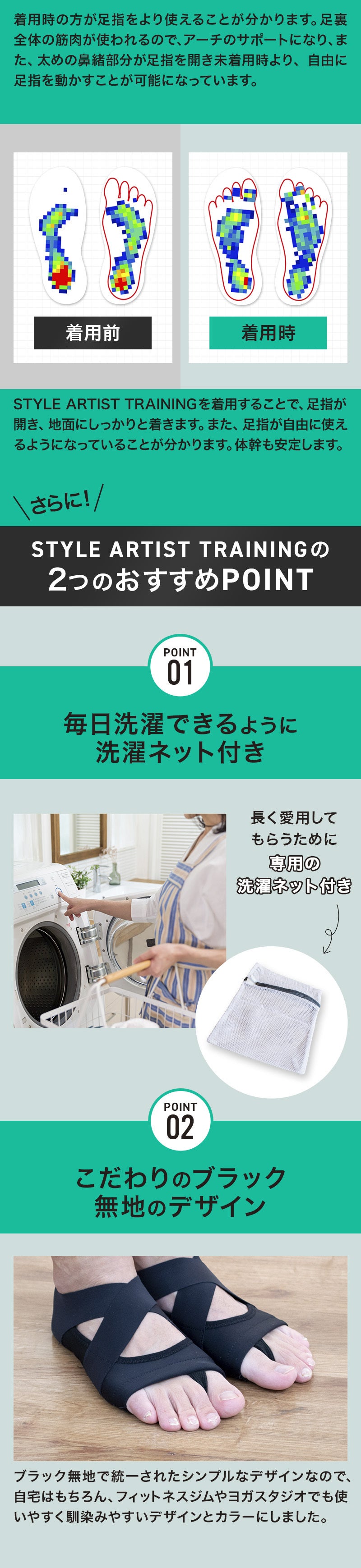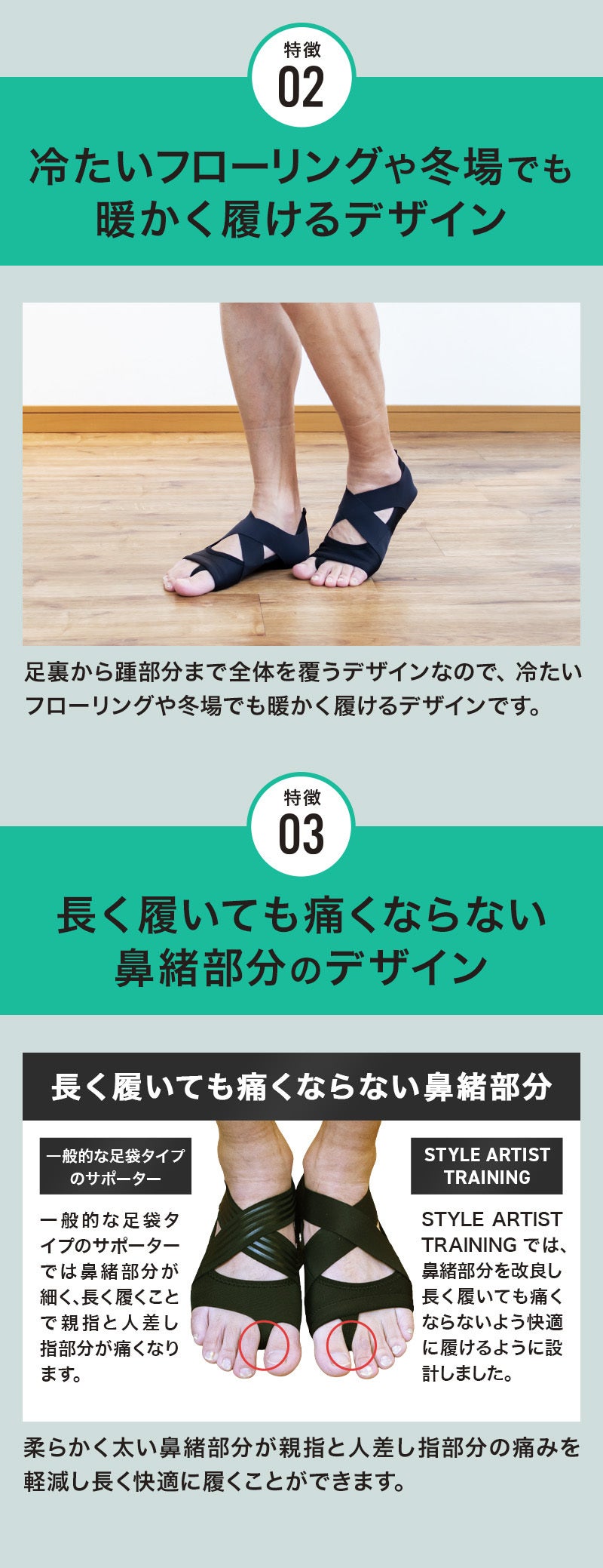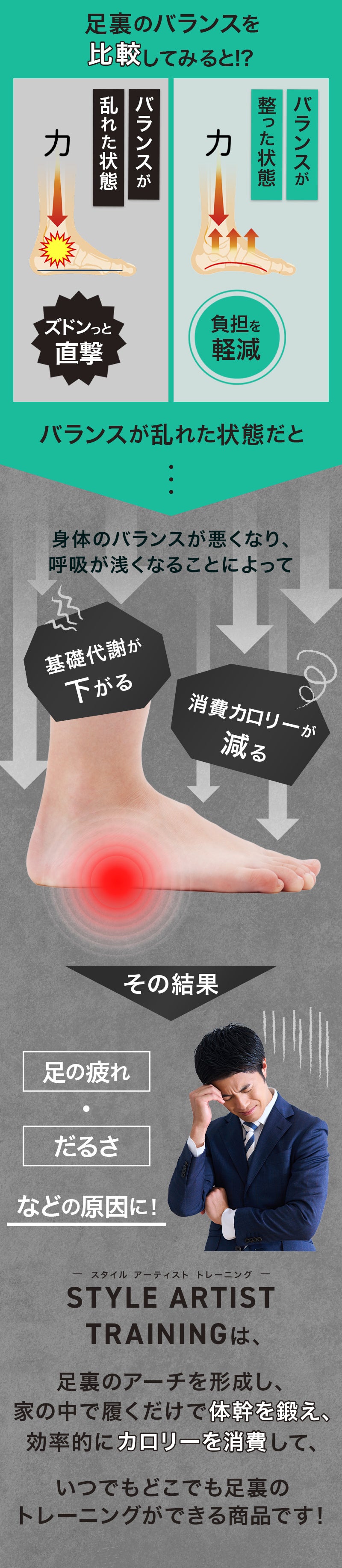 STYLE ARTIST TRAINING(スタイルアーチスト トレーニング)は、履くだけで歩くために必要な「3点アーチ」をサポートします。