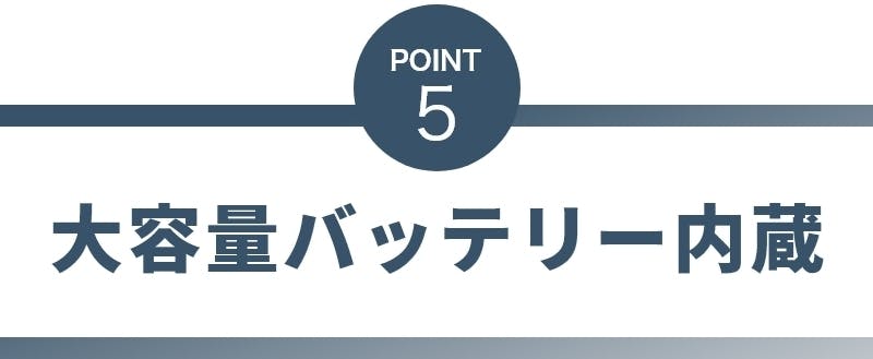 内蔵されたポータブルバッテリーで、音量50%の状態で最大2.5時間の連続使用が可能です。外出時の電源確保の悩みはこれで解消されます。