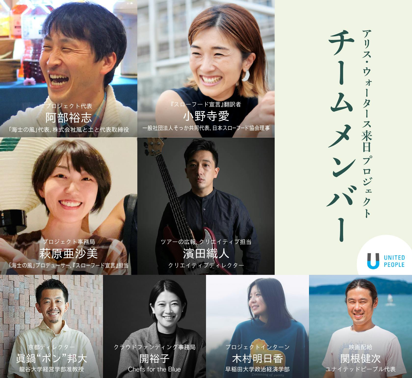 チームのほかに、アリス・ウォータース氏を各地で受け入れる地域パートナー、来日予算を協賛してくださった企業パートナーもあり、現在、総勢50人以上で来日の準備を進めています。