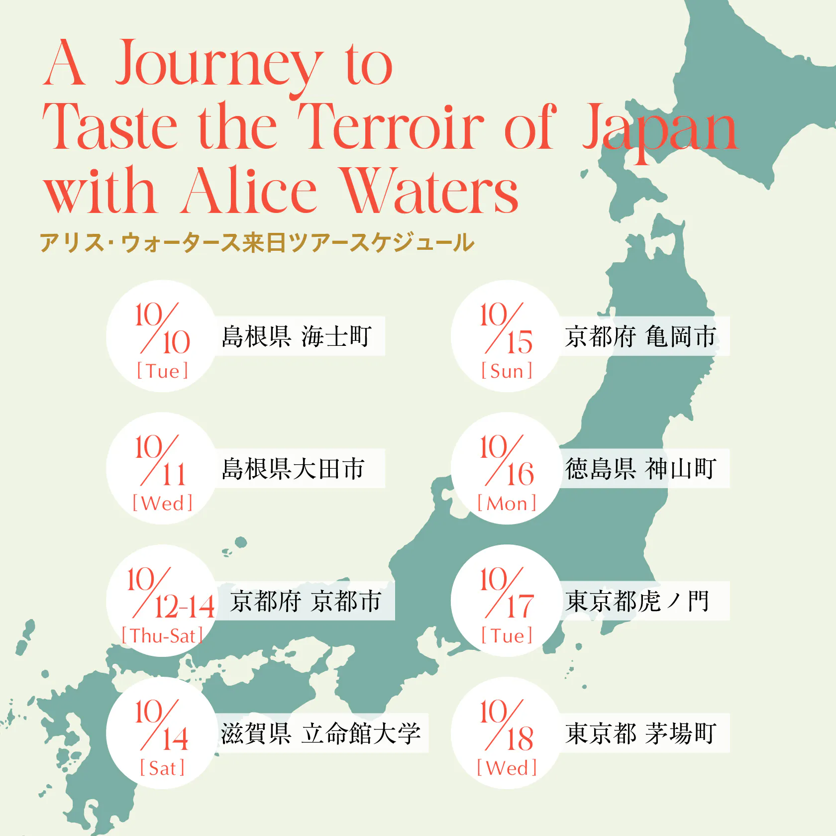 10/9-18の10日間、様々な地域に訪問します。