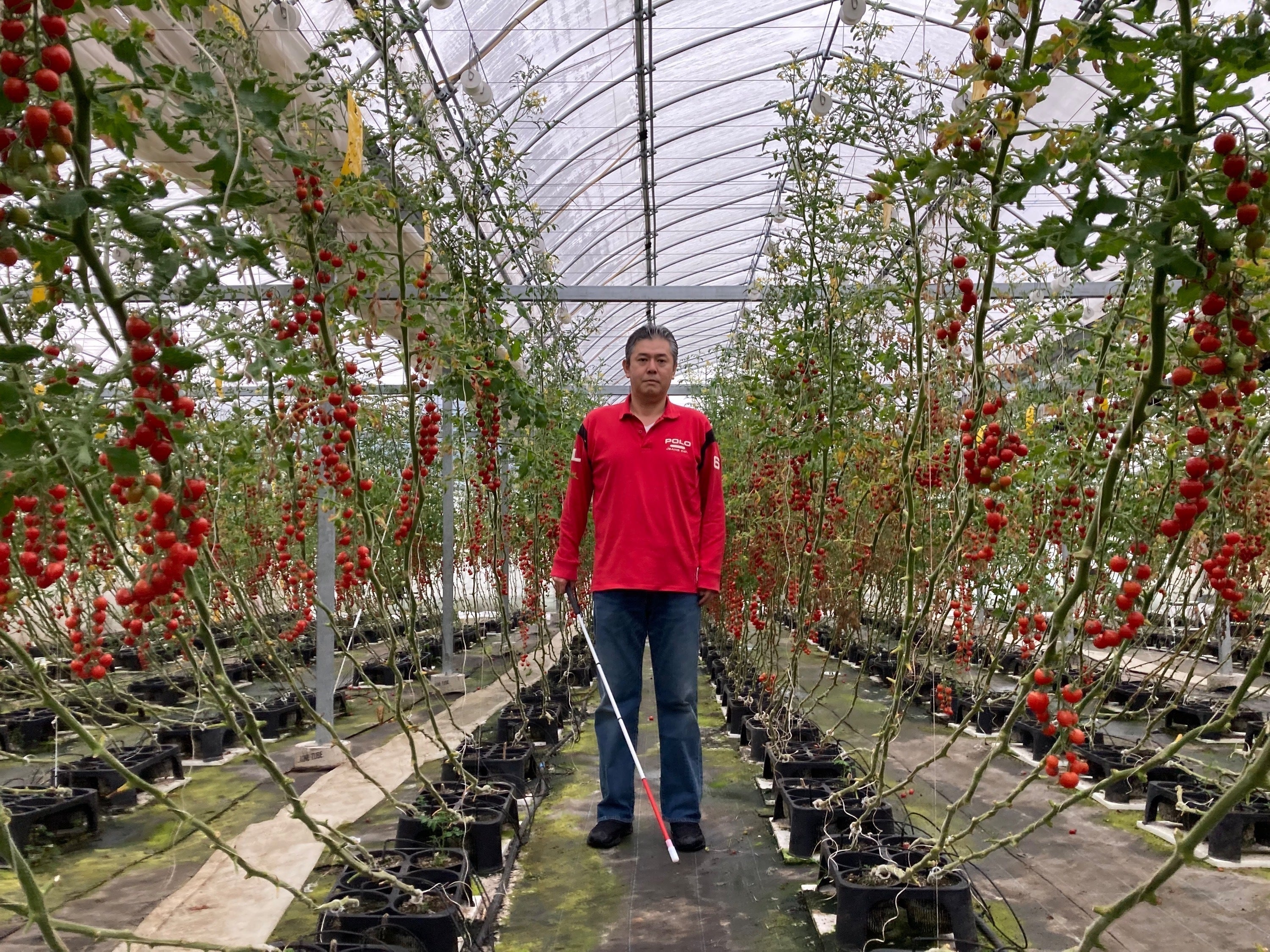 私は網膜色素変性症という進行性の視野障害をもちながら、ビニールハウスでのトマト栽培をしています。 もともとはサラリーマンとして営業などもしていましたが、30代半ばで受けた健康診断で病気が発覚しました。 この「眼」で働いていくために。将来を考えていくなかで思い至ったのが、ビニールハウスという限られた空間での農作物の栽培でした。