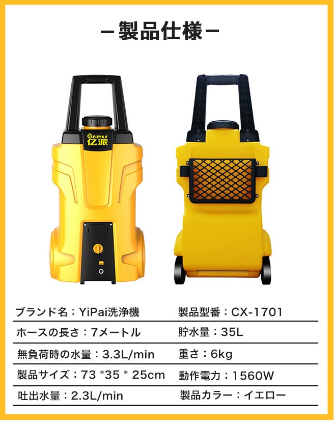 洗車・貯水・バッテリーを一つにまとめたYiPai洗浄機の登場により、洗車の作業がより簡単で便利になりました。これさえあれば、いつでもどこでも洗車可能。ホースや電源に縛られることもありません。