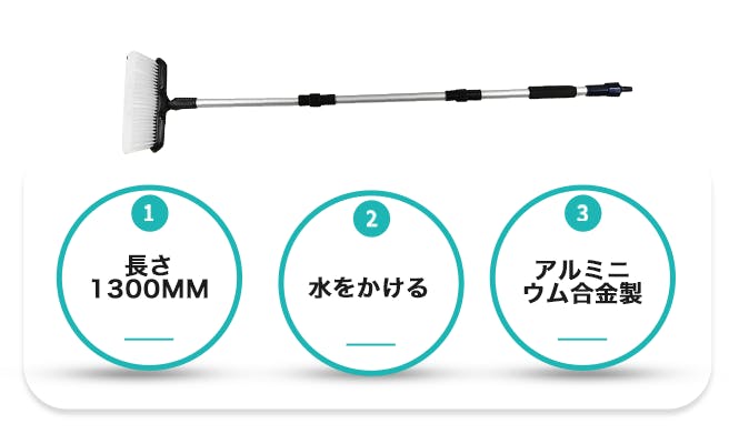 本製品には長さ1300mmのブラシが付属していて、水をかけながら使用することができます。水だけでは落ちない頑固な汚れや隙間まで綺麗にすることができます。