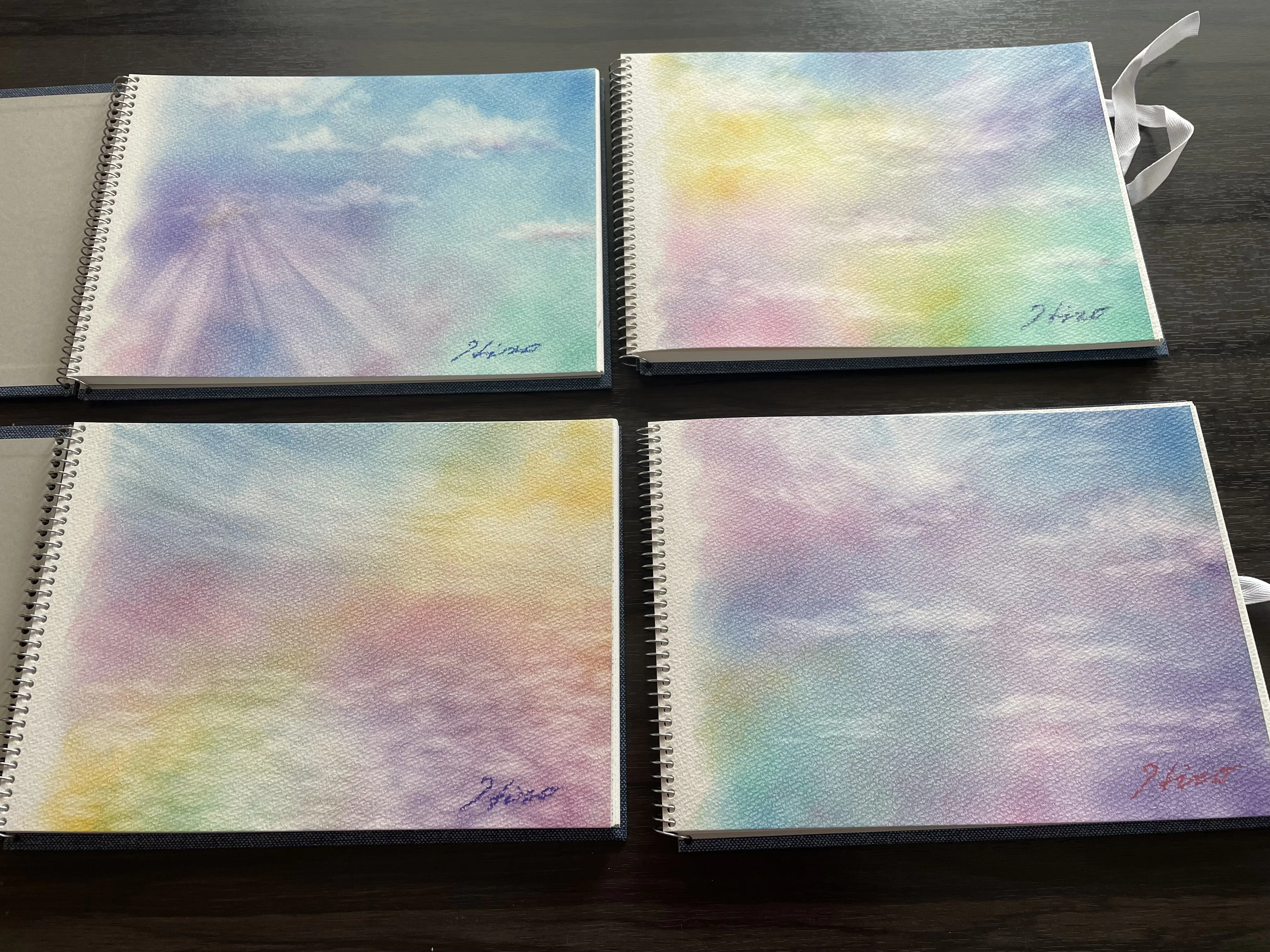 2024/03/14 11:42ようやく、ルミエフパステルの制作が完了いたしました!原材料や備品の調達も無事終了し、画材の色調整をしながらひとつずつケースに詰めました。セットが完成!昨日の油絵教室にてご支援いただいた生徒さんに、ルミエフパステル+原画付きスケッチブックとお嬢様からのご支援いただいたサンキャッチャー+作品集 をお母様に お渡しいたしました。原画はその方のイメージカラーでの配色とイメージした雲を描いています。原画は順次制作しておりますので、今しばらくお待ちくださいませ。発送の準備が整い次第、3月末までにはお届けを予定しております。また、4月発送の竹の画材ケースとガラスの画材ケースはクラフト作家さんが現在制作されておりますので、こちらも今しばらくお待ちくださいませ。どうぞよろしくお願い致します。 もっと見る