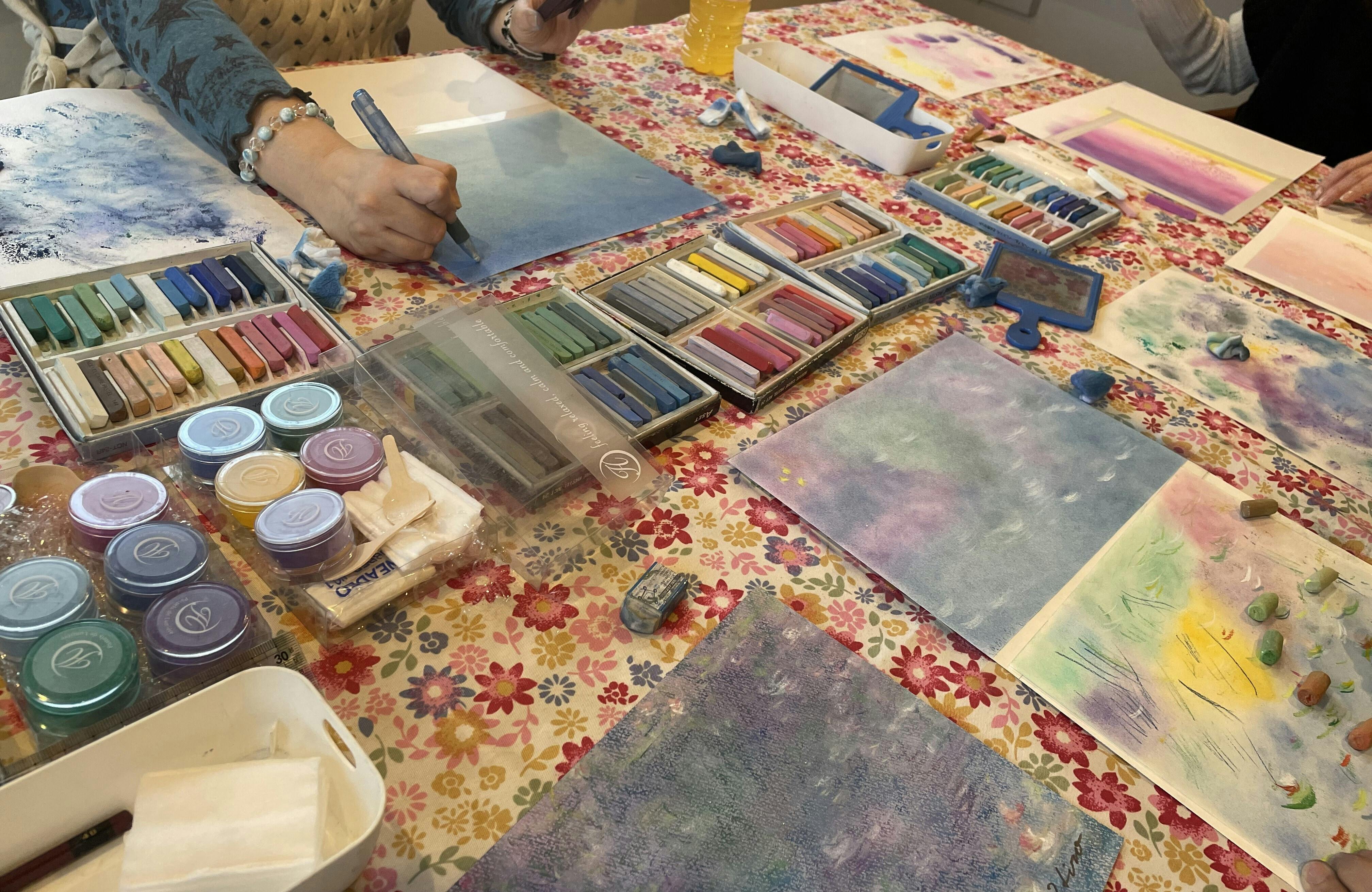 同級生のご自宅に同級生が集まり、その中のお二人はパステル初体験。
