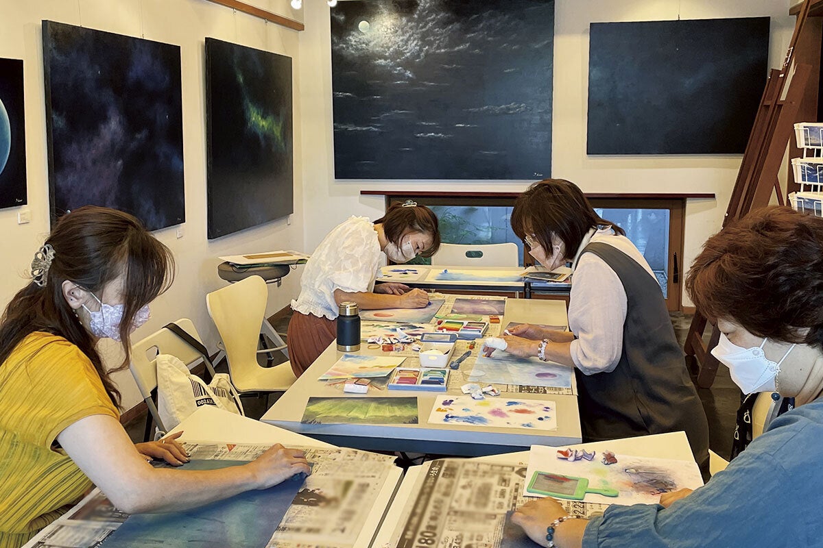 絵画に正解はありません。自分の好きな風景や頭に浮かんだモチーフを描かれ、絵が苦手と思っていた方でも正解のない自分の作品に自画自賛されています。その結果、自己肯定感が高まっていきます。