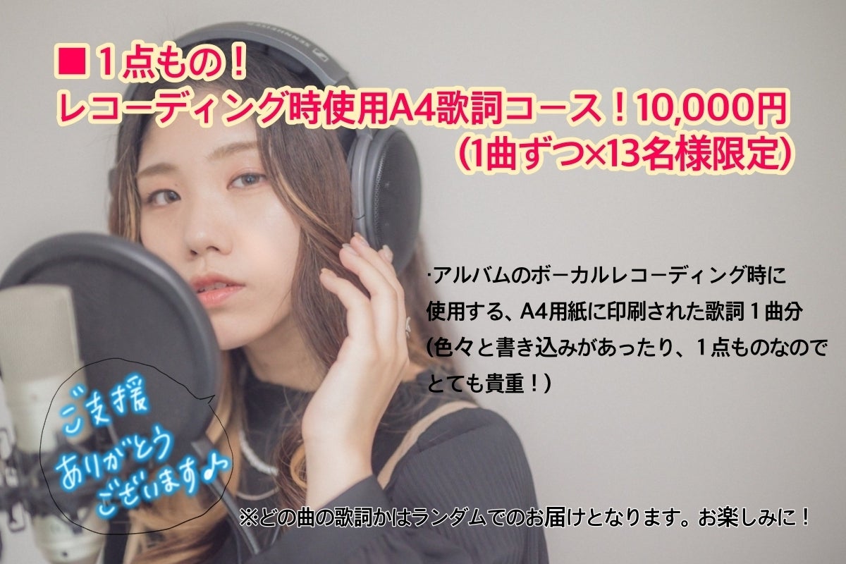 ■1点もの!レコーディング時使用A4歌詞コース10,000円(1曲ずつ×13名様限定)