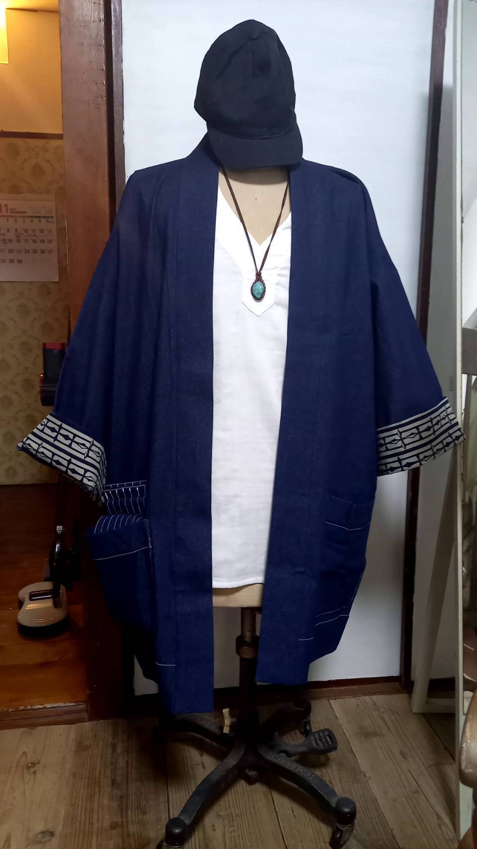 はんてんはロングセラーで、寒いときも、暑いときもちょいとひっかけて、どこへでも着ていけます。袖口にアクセントして好きな布をあしらえるオーダーメイドを受けています。