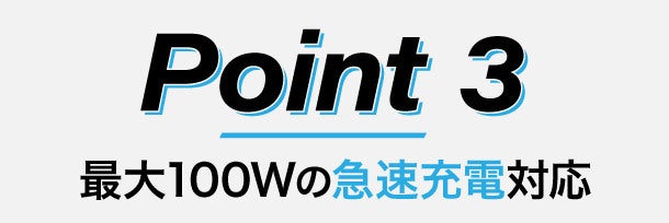 OneWorld100はGaN(ガリウム窒化物)を採用しており、高パフォーマンスを発揮します。最大で100Wの高速充電を可能にし、充電アダプターとしても非常に高性能です。