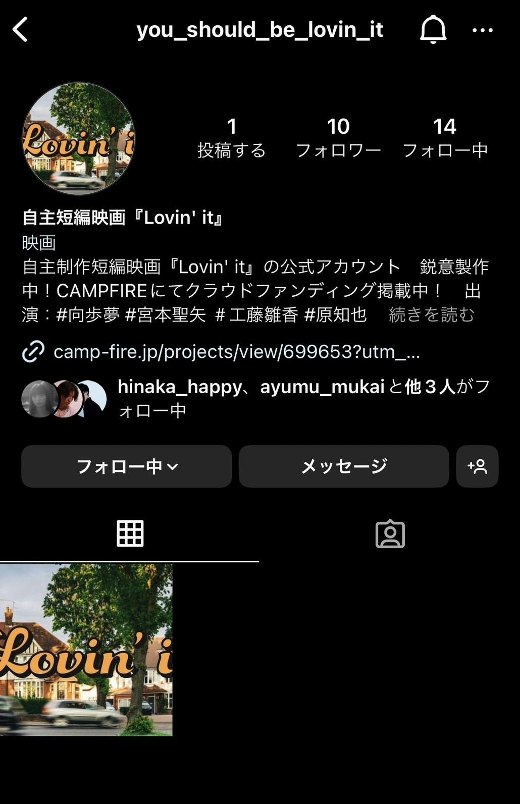 2023/10/19 02:13寺原です!前作の反省を踏まえて、ポスプロにもしっかりと力を入れようということで、、短編映画『Lovin' it』のインスタグラムを始めました!!Instagram- 自主短編映画『Lovin' it』普段は自分のアカウントはあんまり投稿しない派です、、年に10投稿したら良いくらいの僕ですが、広報スタッフの力を借りながら運営していきます!!!是非、フォローと拡散よろしくお願いいたします!キャスト紹介や、ロケ地紹介、撮影の裏側、オフショット、作品チョイ見せ(もあるかも?)作品に対する想いなんかも裏表なくありのままを投稿しようと思っています!一人でも多くの方に届くように作品に関するコンテンツをどんどん投稿していきますのでフォローして待っていてください!以上、寺原でした! もっと見る9/30-10/1 撮影終了!!