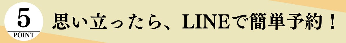 仕事の合間を見つけて、平日の昼間に電話を...なんて手間は不要です!次回の時間の予約や変更は、すべてLINEアプリから行えます。24時間対応の予約システムで、忙しいあなたにも気軽に利用いただけます!