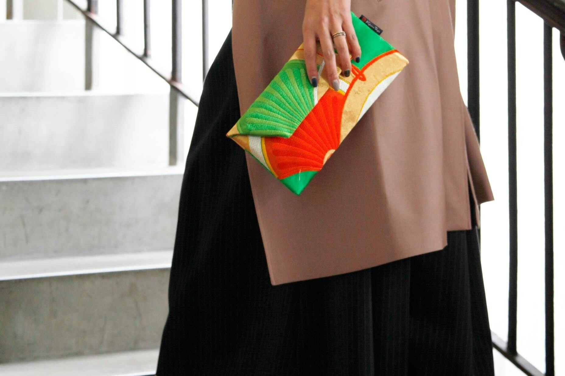 <帯の特性の結びを活かしたクロスボディバッグ>