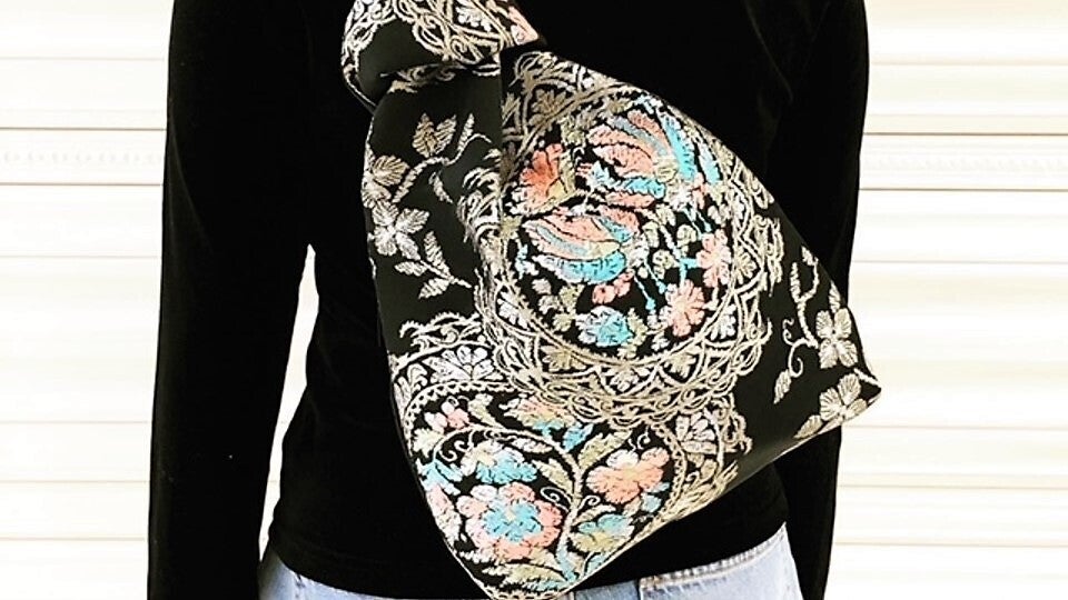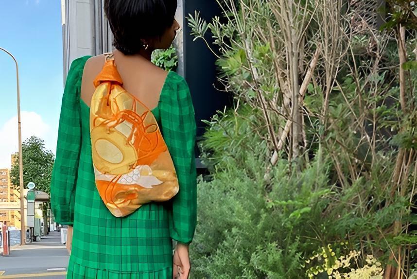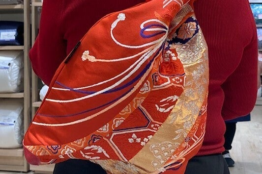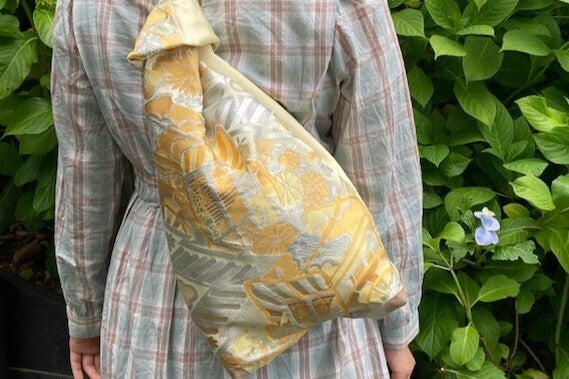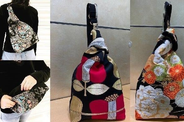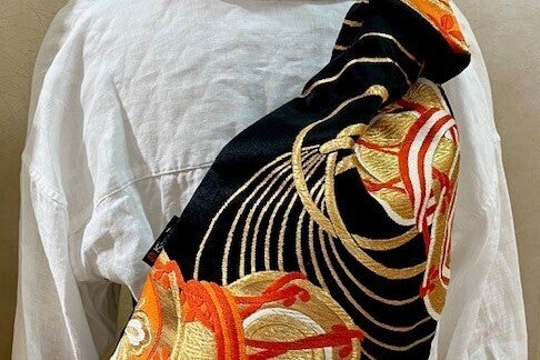 <帯の特性の結びを活かしたクロスボディバッグ>
