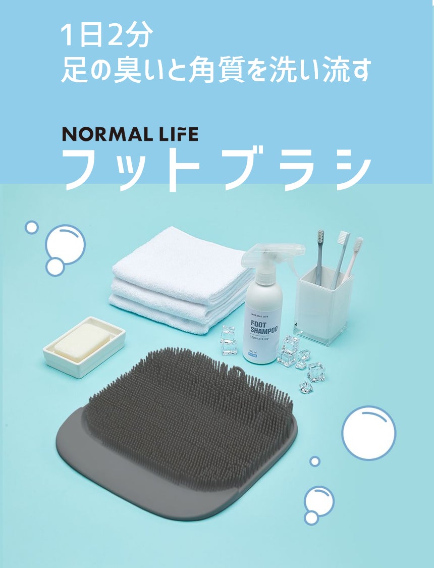 NORMAL LIFE フットブラシは、たくさんの試行錯誤を得てようやくできた宝物です。まず、自ら使いたくなる商品を目指して開発しました。これからより多くの方々がフットブラシを使うことによって、より楽しく足を洗えるようになることを期待しております。