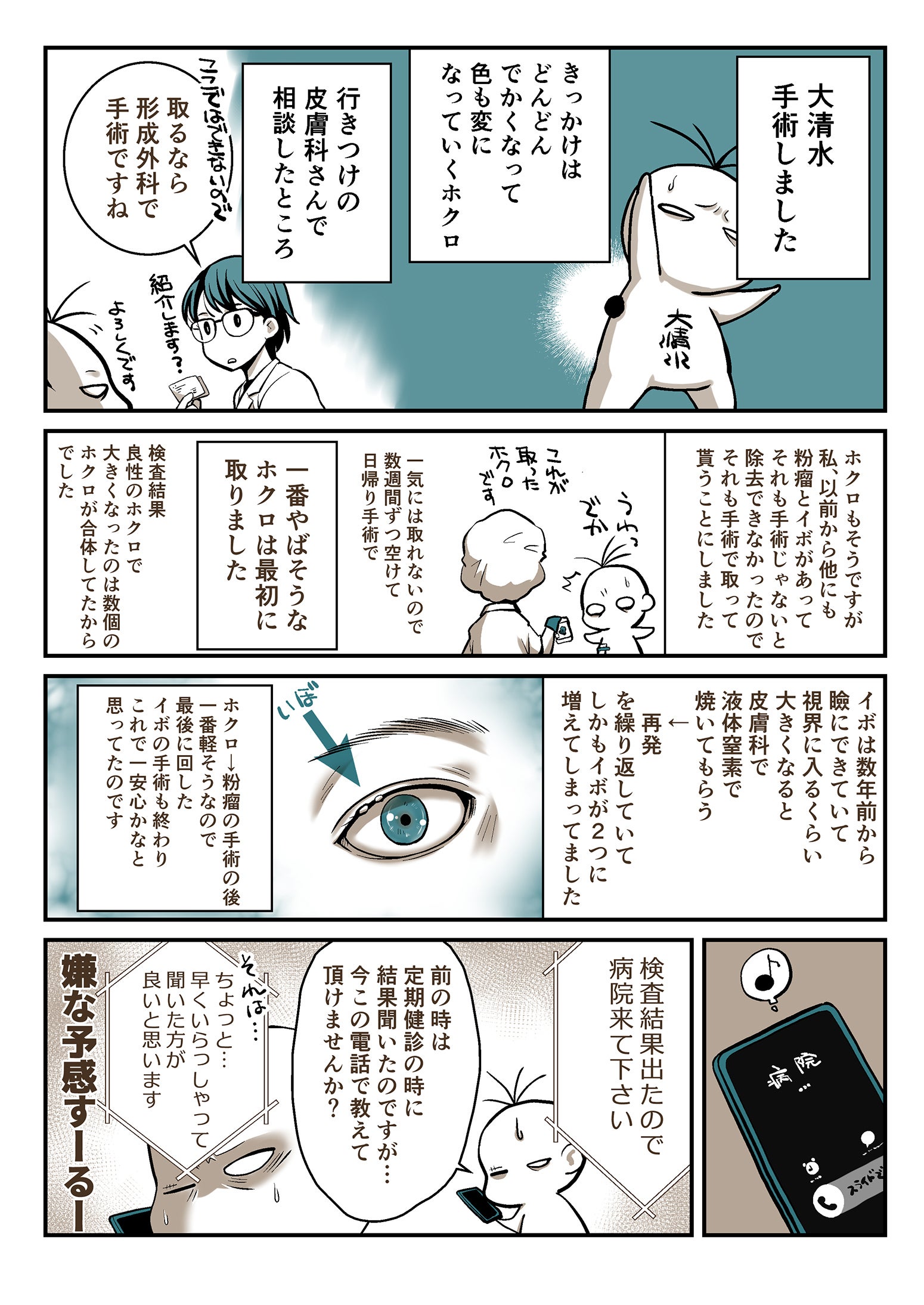 今回、ホクロを取ろうと思わなければ取り返しの付かない事になってたかもしれないので、今現在ガンだと判明したのはかえって良かったかもしれません。