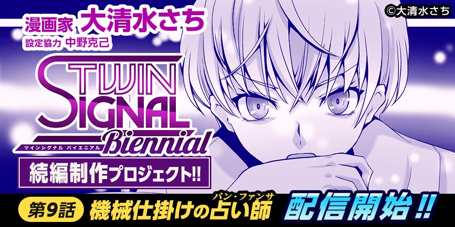 こんにちは!大清水です。大変お待たせ致しました!本日、『TWIN SIGNAL Biennial』第9話を公開しました!お伝えしていた日程より更新が遅くなってしまい申し訳ございません。https://medibang.com/comics/official/0cbs340000005644100000000000a/第10話の更新は来年2月下旬頃を予定しております。次回の更新もお楽しみにしていただけるとうれしいです。引き続き、『マンガ『TWIN SIGNAL(ツインシグナル)』続編プロジェクト』をよろしくお願い致します。