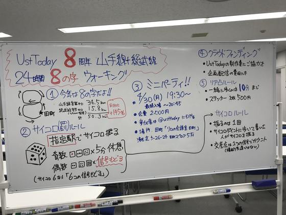 ライブメディア情報番組「UstToday」配信8周年記念山手線24時間八の字ウォーキングスタート!