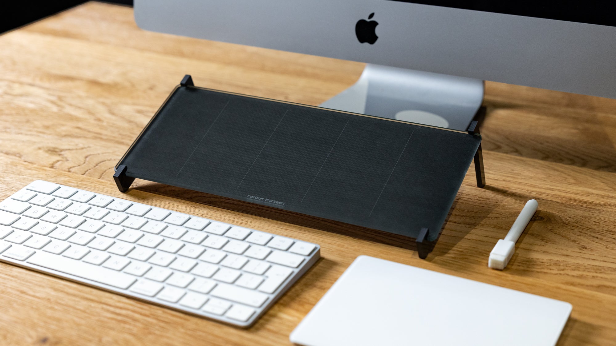 carbon thirteenはデスクワークを余儀なくされた時に開発されたガラスデスクボードです。