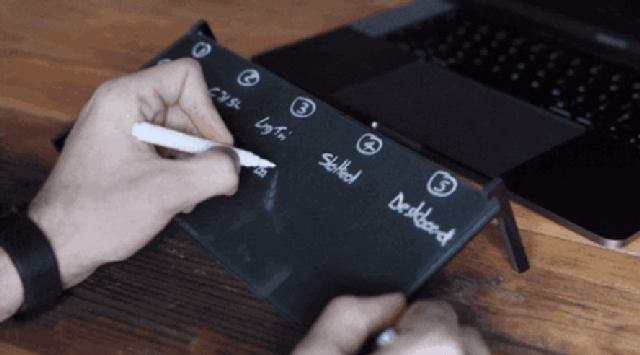 デスクボードの表面は、プラスチック製とは異なり、強化ガラス製で、エッジは平滑化され、面取りされています。どの色のペンを使っても、簡単に書き込んだり、スケッチしたりすることができます。また、デスクボードにはイレーザー付きのホワイトペンを同梱していますので、箱から出してすぐにメモを取ることができます。
