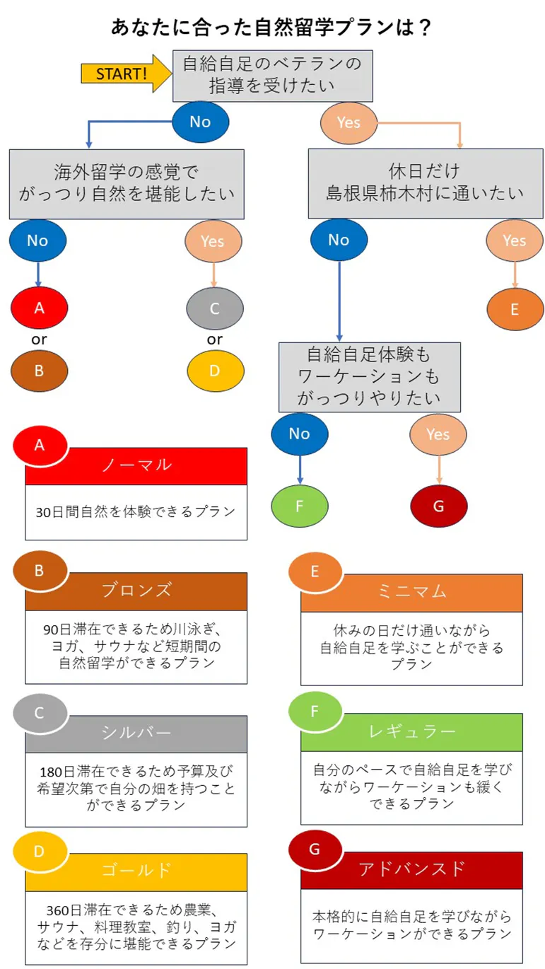 自由気ままに自然を体験できるプランと、提携先の古民家で自給自足のベテランから学ぶことができるプランです。