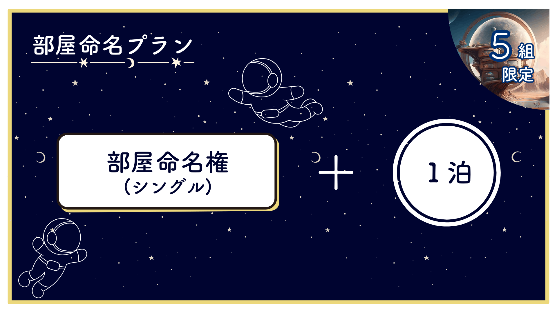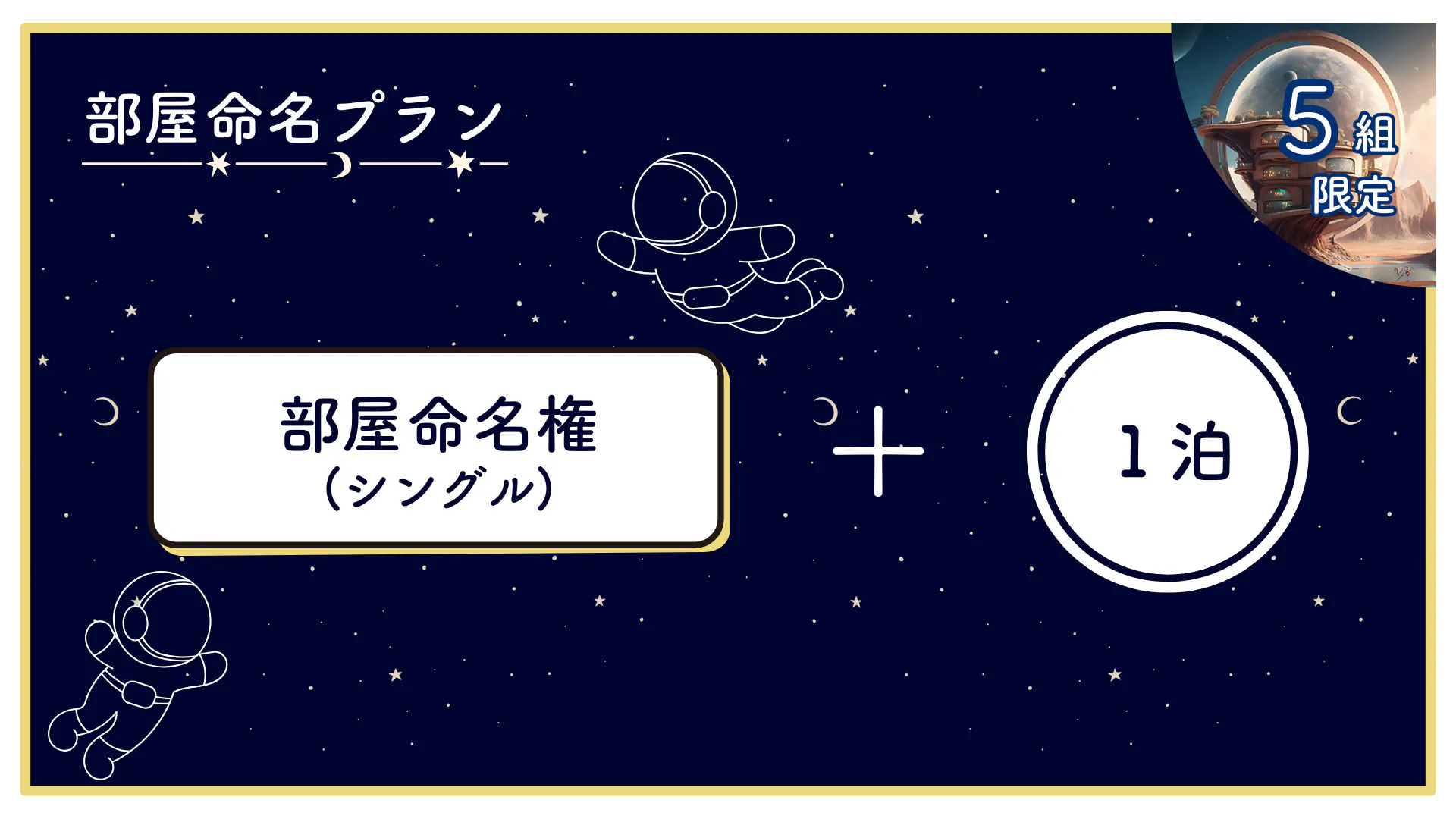 ご宿泊に加えて、宇宙ホテルの部屋に名前をつけていただけます!