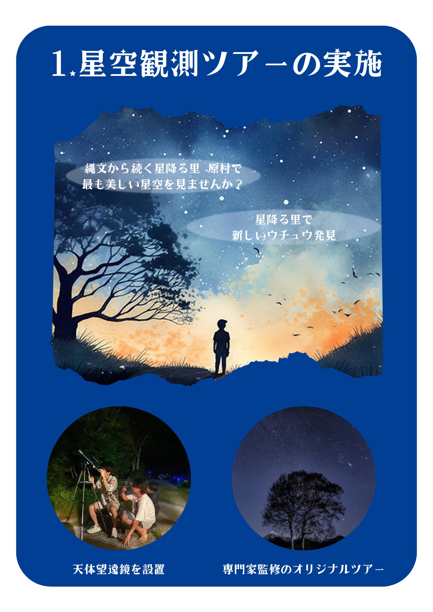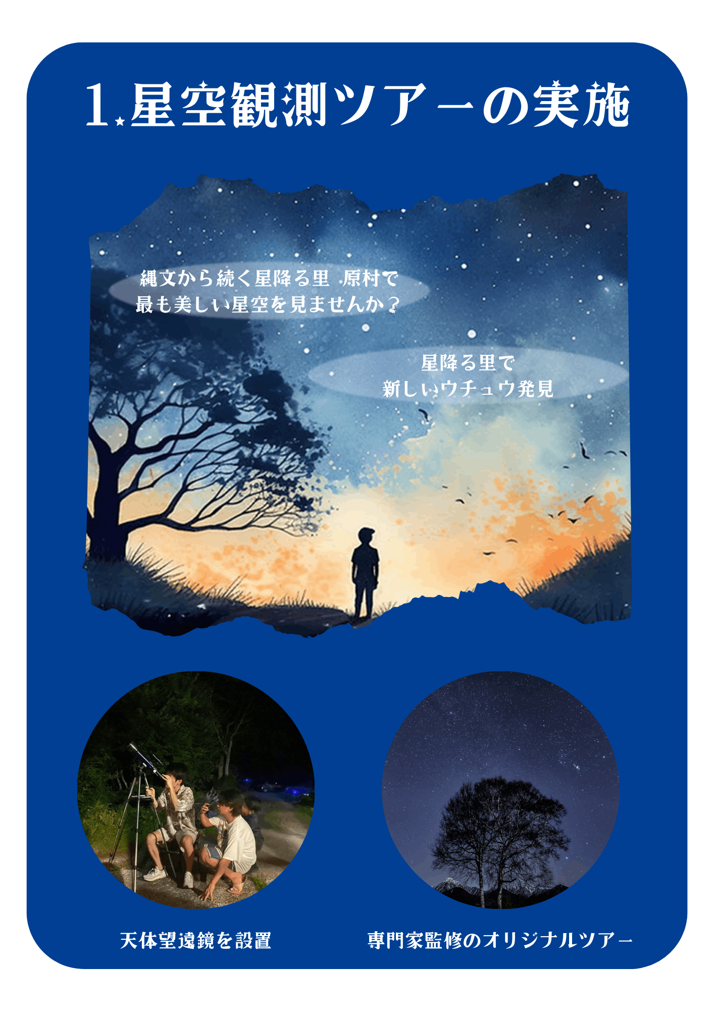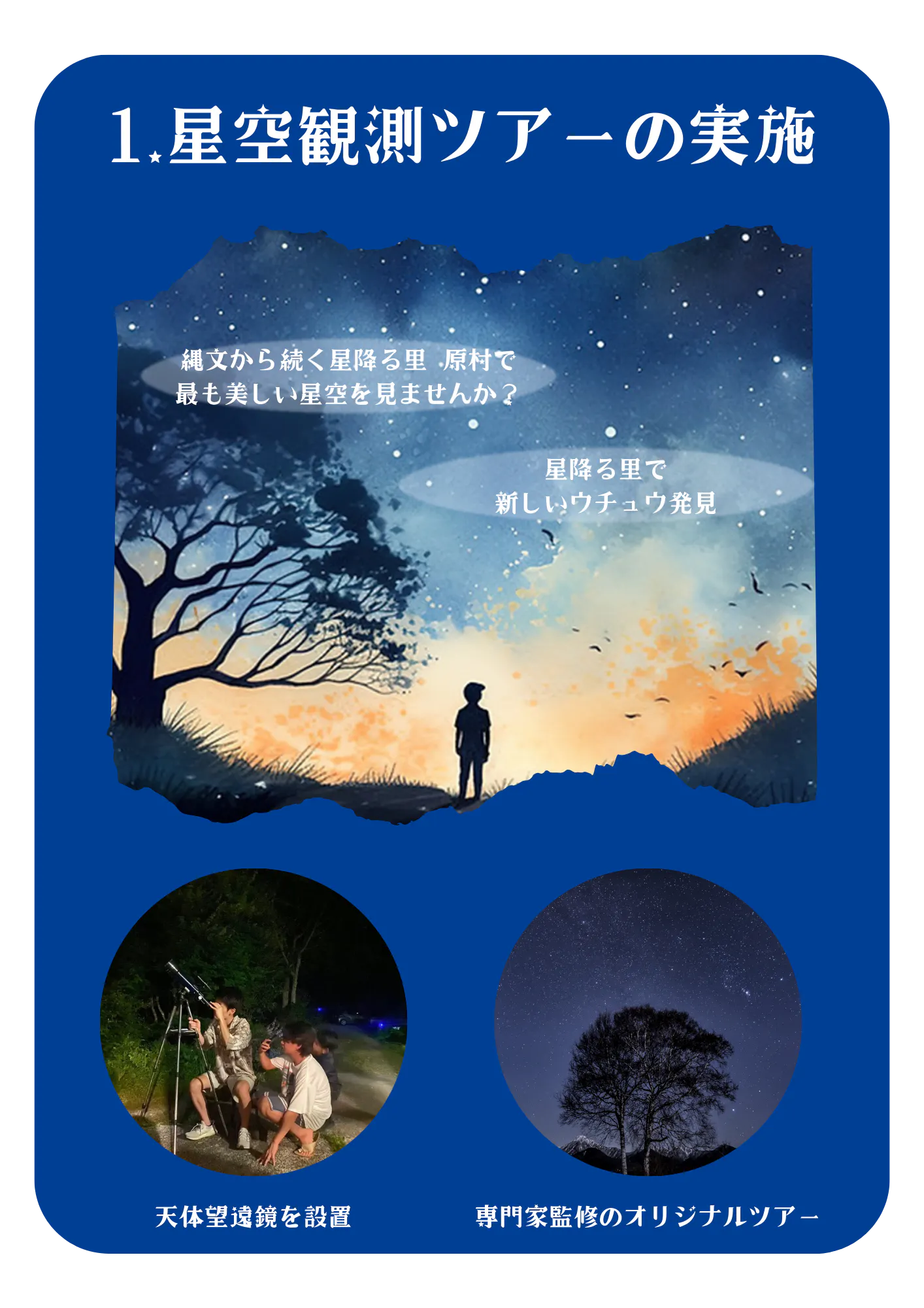 星降る里原村という地でより宇宙を体験できる場づくりを目指し、以下の取り組みを実施します。
