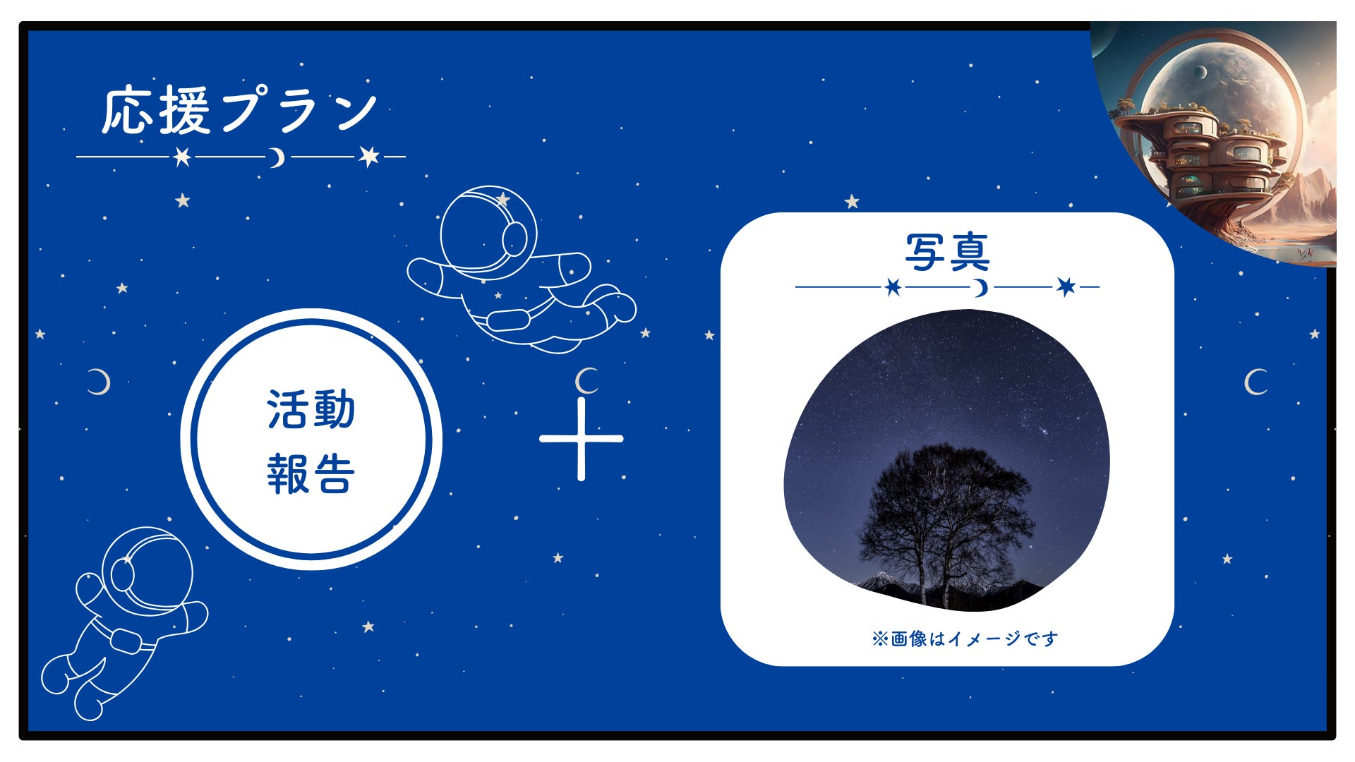 活動報告書に加えて、宇宙ホテルから見える美しい星空の写真をお送りいたします!