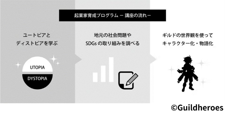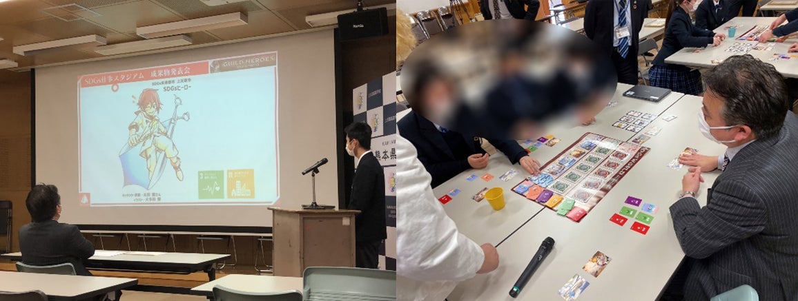 このプログラムでは、県立上天草高校の高校生たちがSDGsや地元の社会問題について学びながら、私たちの持つトレーディングカード(トレカ)「ギルドヒーローズ」で培ったノウハウを活かし、一緒に実際のキャラクター制作(ストーリーメイク・絵コンテ制作など)を行い、2人の「SGDsヒーロー」を生み出しました!
