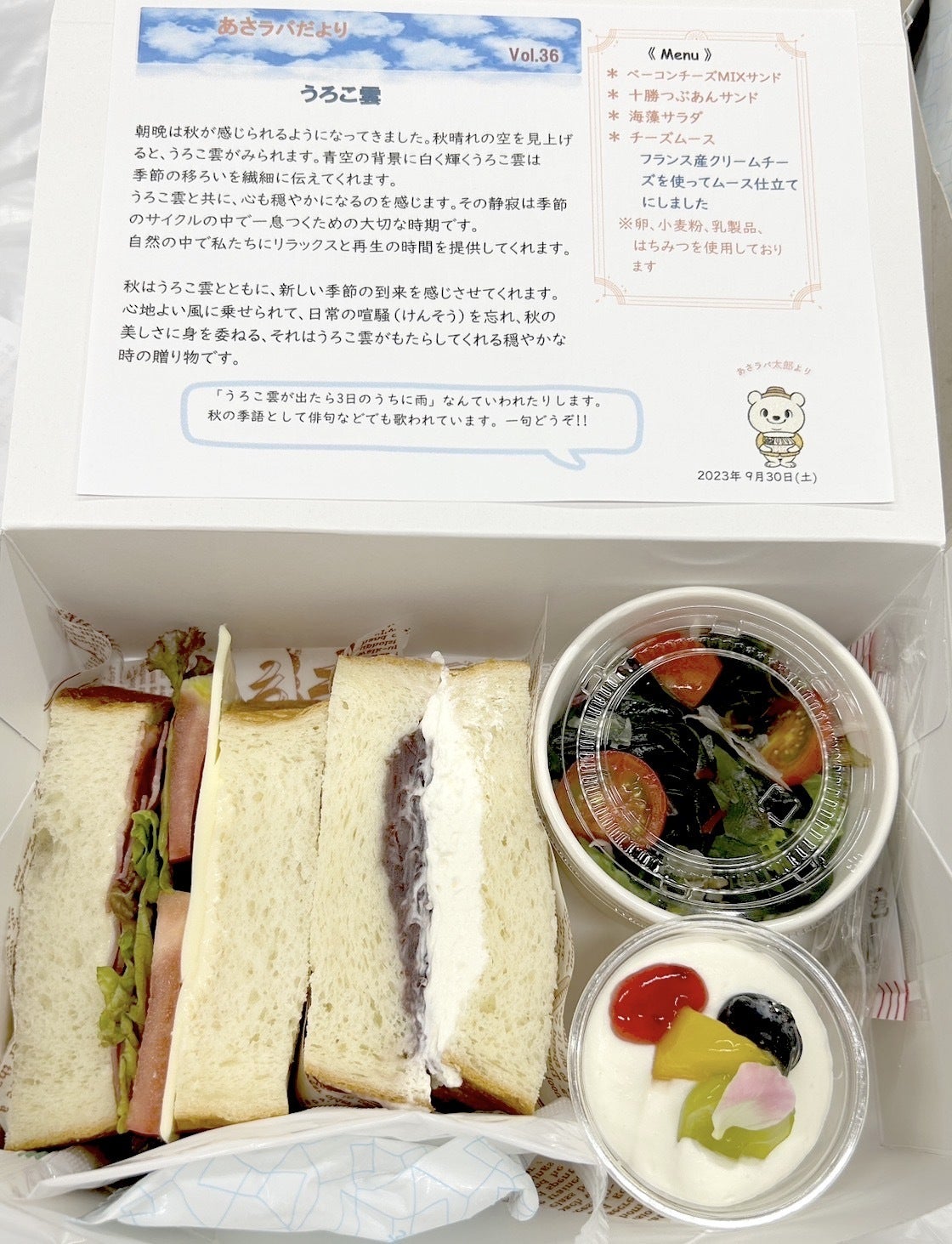 1.先にも紹介した「あさラバ ブランチボックス」はもちろん商業ベースとしての取り組みですが、きっかけは「あの人元気かな?」を確認する為のものでした。