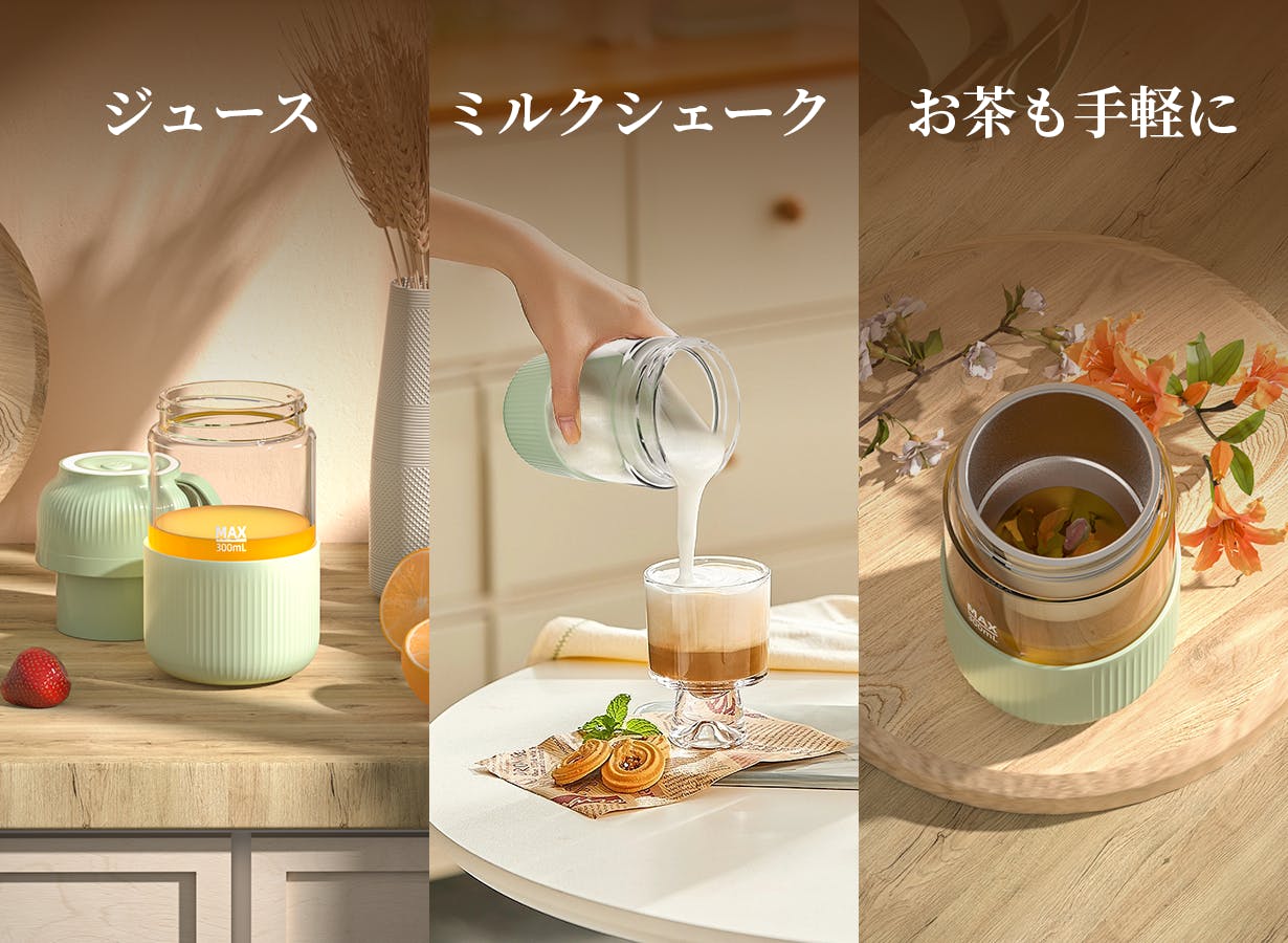 新鮮なジュース、お茶やミルクシェークも簡単にできます。