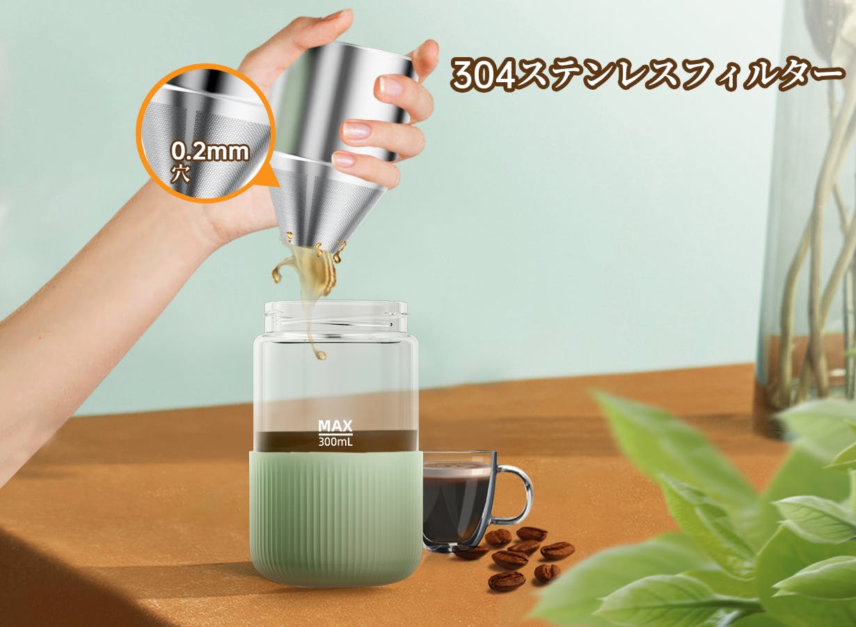 ステンレスフィルターが付き、紙フィルタを購入する必要がありません。