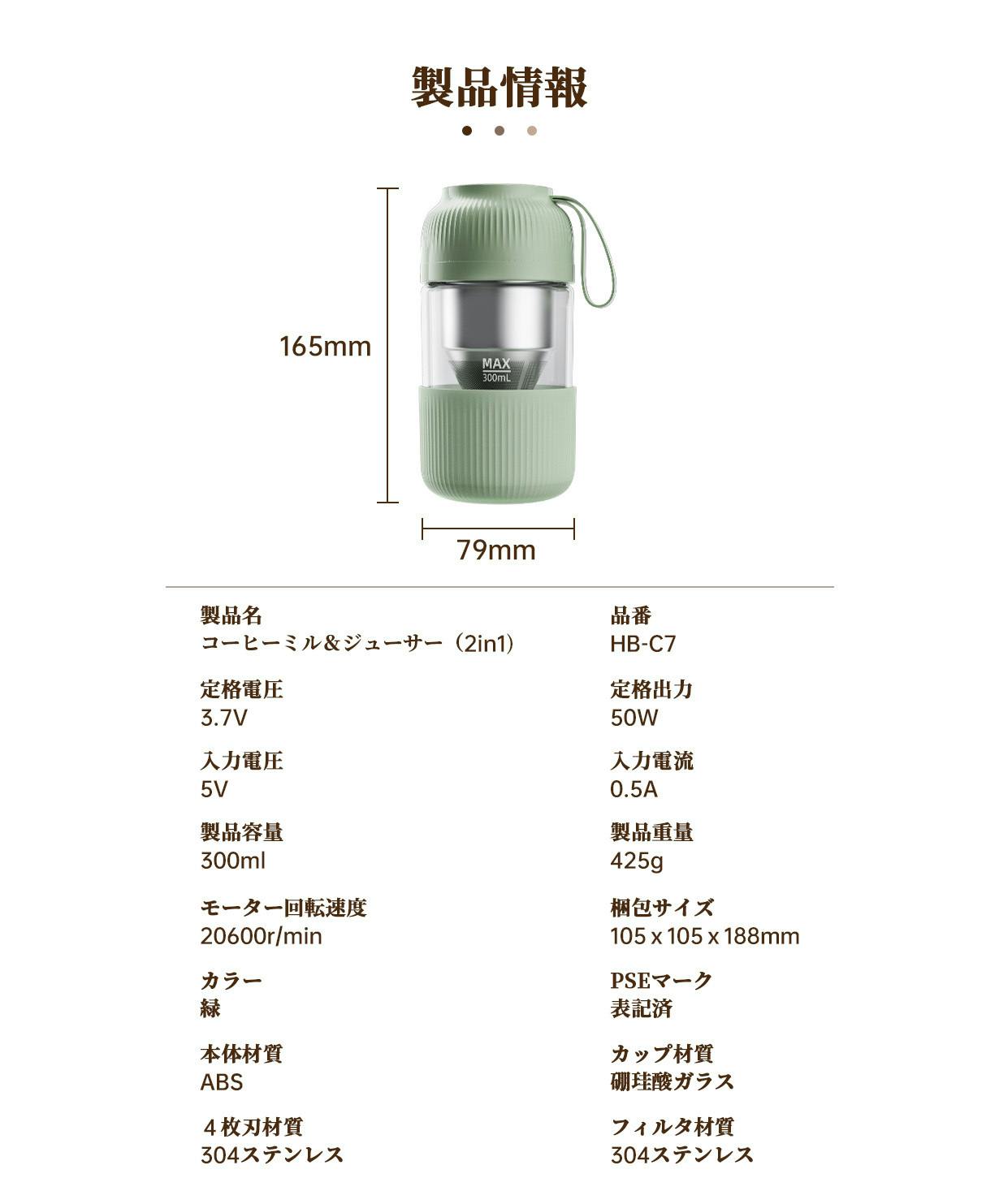HB-C7コーヒーミル&ジューサー(2in1)は毎日、どこでもコーヒーやジュースなどを楽しめます。WEST TRADE株式会社は輸入代理店として日本にHB-C7を販売させていただきます。是非とも皆様のご支援をよろしくお願いいたします。