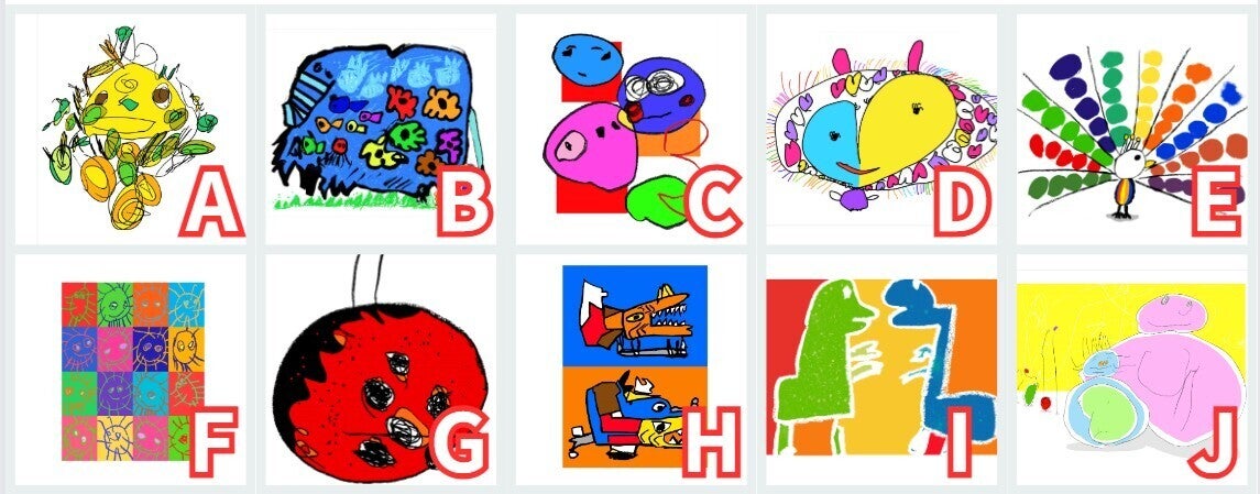 ・上手下手にこだわらずに、お好きな絵を何枚かお選びください。お子さま自身に選んでいただくのも良いでしょう。